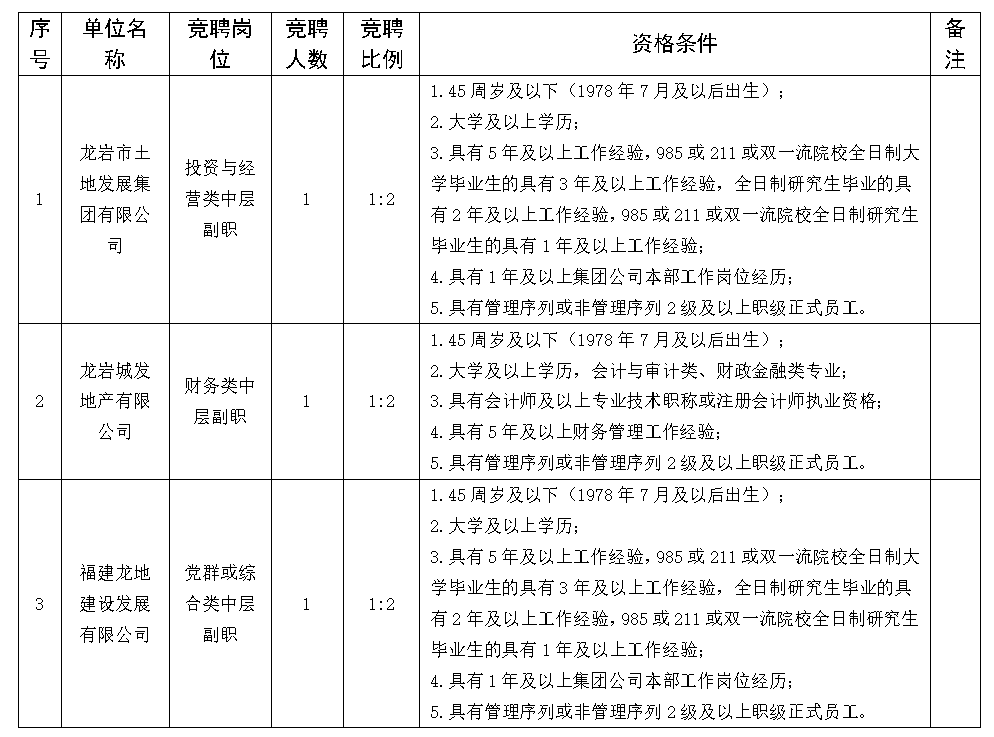 龍巖城市發(fā)展集團(tuán)有限公司關(guān)于開展 所屬企業(yè)中層管理人員競(jìng)聘上崗的公告